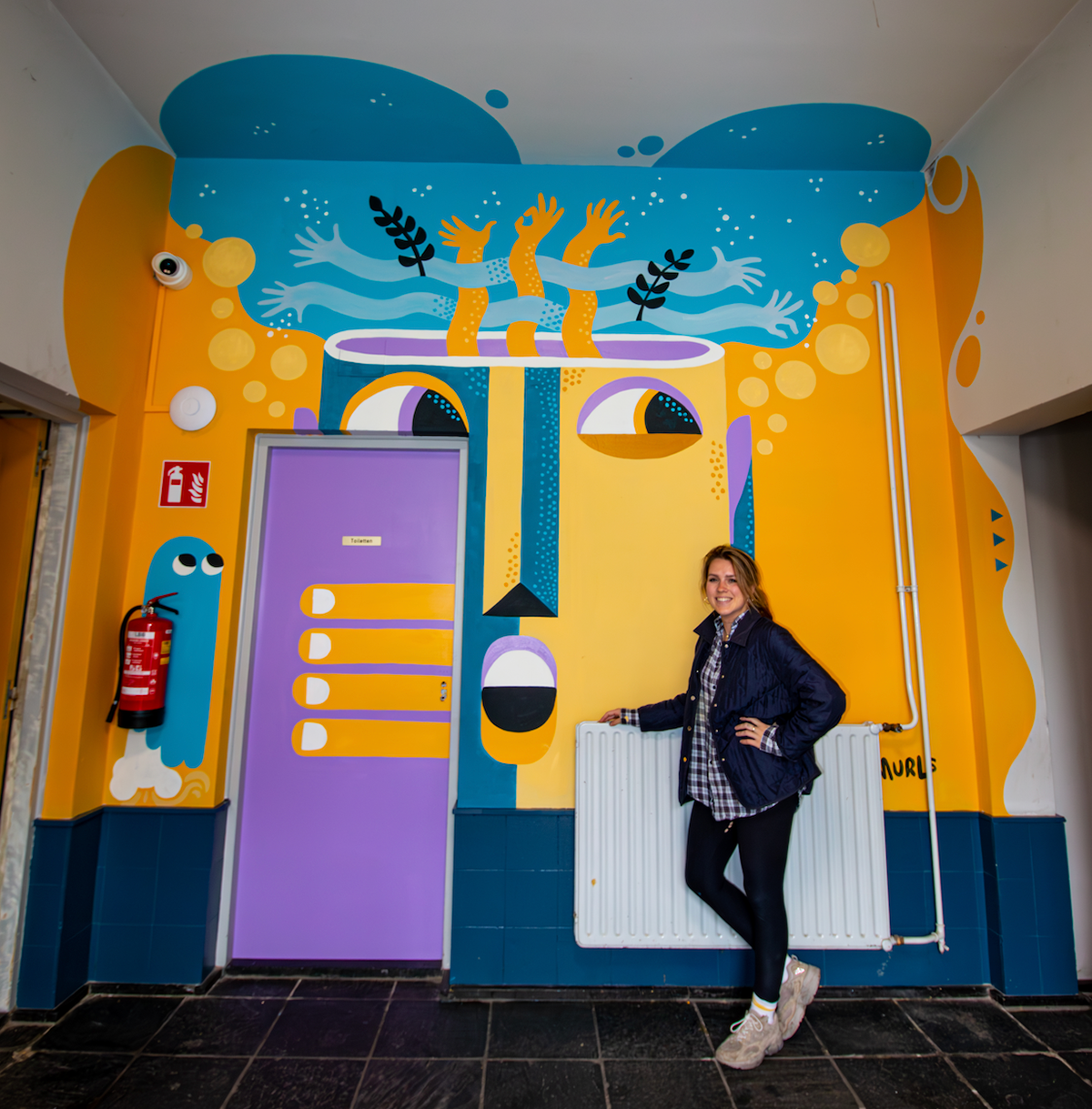 At the beginning of May 2023 I designed and painted a mural of 3.50 x 3.50 meters at the entrance hall of